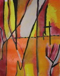 2011Abstract studie 6. Compositie op basis van lijnen en drie vlakken. Gemengde technieken (acryl en olie pastel). Opdracht cursus R. van Vliet.